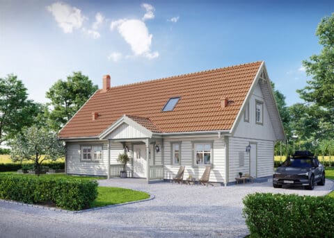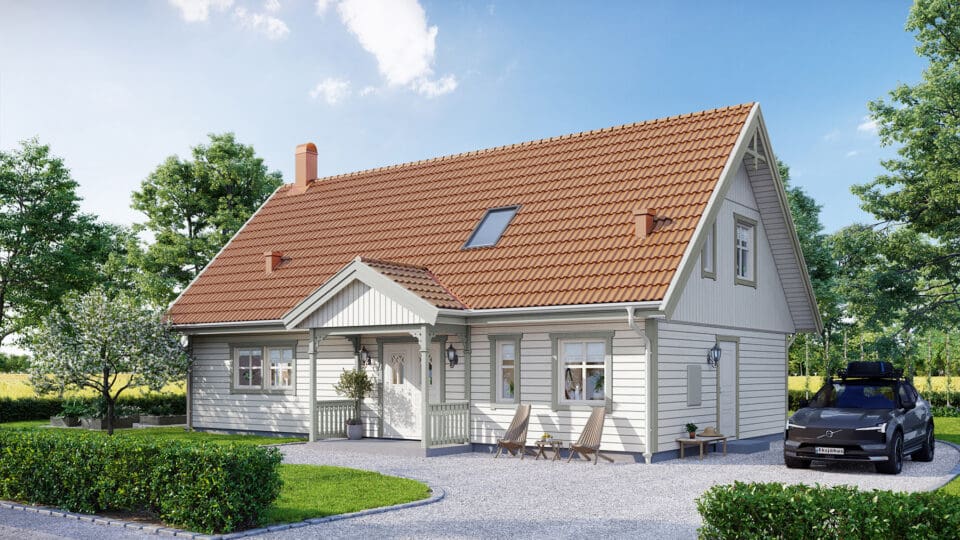 I Dalhem Traditionell kombineres åpne områder med rikelig med oppbevaring i en moderne tolkning av et tradisjonelt trehus, komplett med snekkerdetaljer og sprosser. Resultatet er et hjem hvis tradisjonelt ytre og praktiske indre passer perfekt til landlige omgivelser. Husets hjerte, den romslige kjøkken-, stue- og spisestuedelen, har et stort spiskammer som standard, noe som gjør huset til en drøm for deg som elsker matlaging og gjerne inviterer både familie og venner!