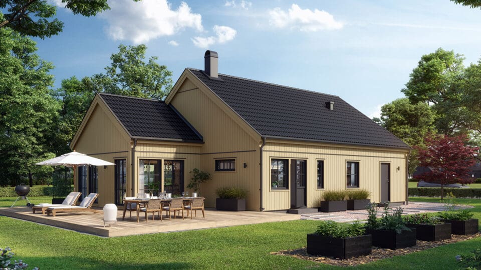 Fagerhem er lett å tilpasse. Utvid huset mot inngangen med et oppholdsrom ved de mindre soverommene, et perfekt lekerom for de mindre barna eller sosialt område for de større. Et mønetak gir en større opplevelse av rom i stuen, og en tilkoblet garasje/carport bidrar med ekstra oppbevaring.