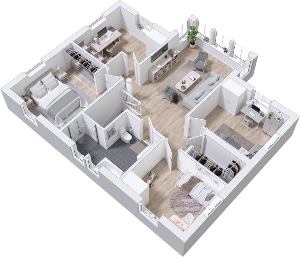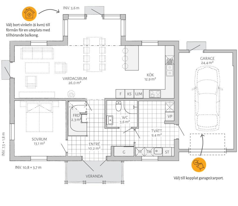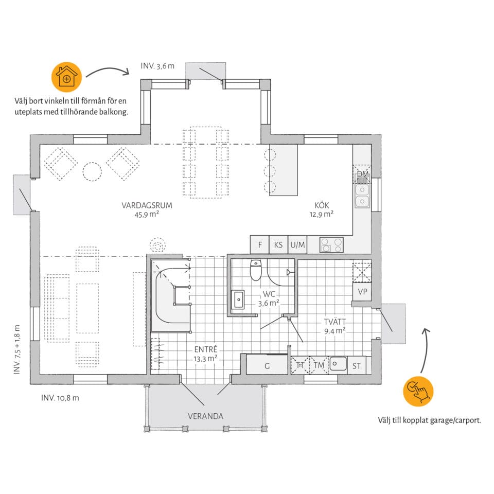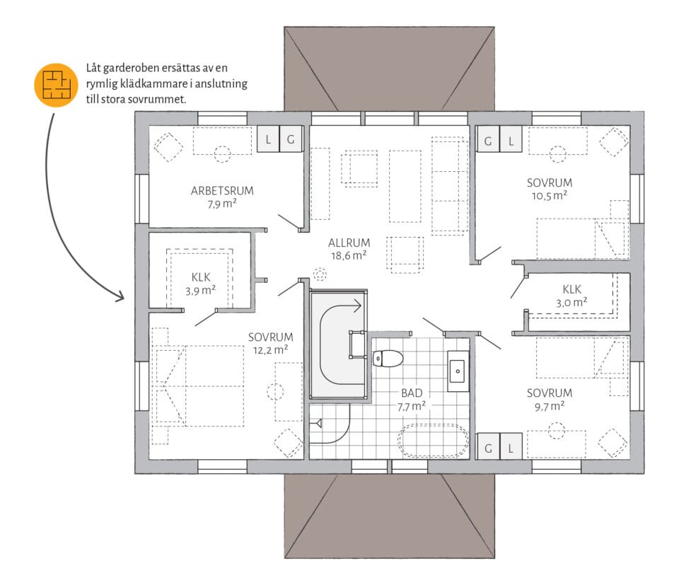 Stjärnhem er lett å tilpasse! Del av stuen for et ekstra soverom i første etasje og bygg et praktisk lager under trappen. Avslutt med en tilkoblet garasje med praktisk inngang fra vaskerommet, og du har all plassen du trenger.