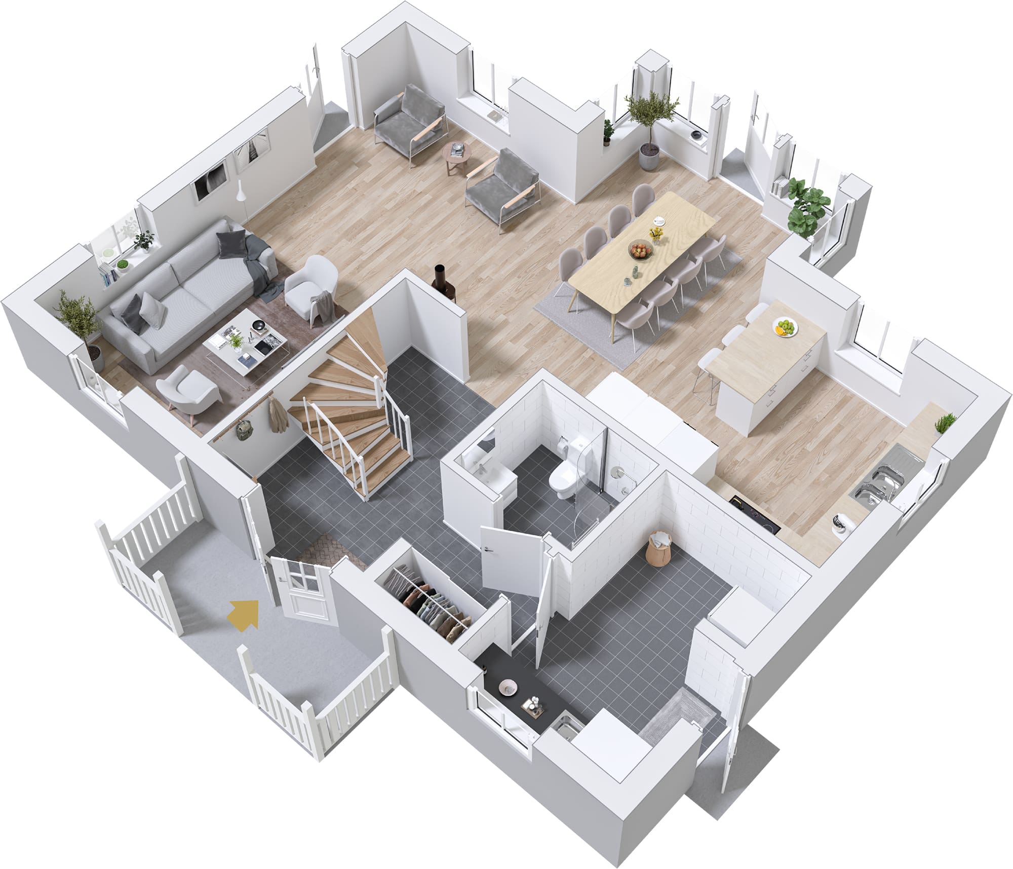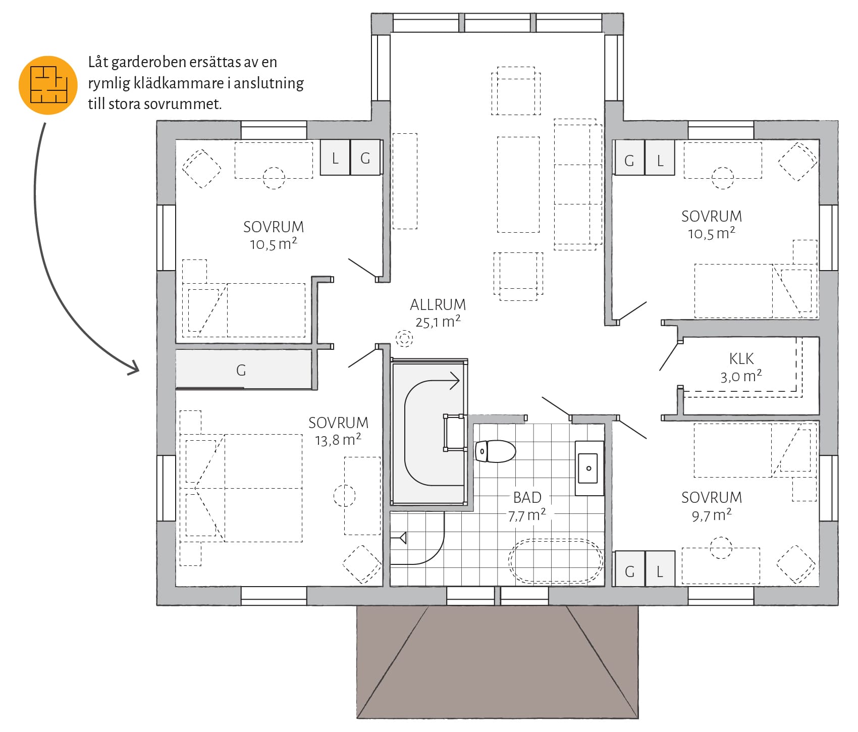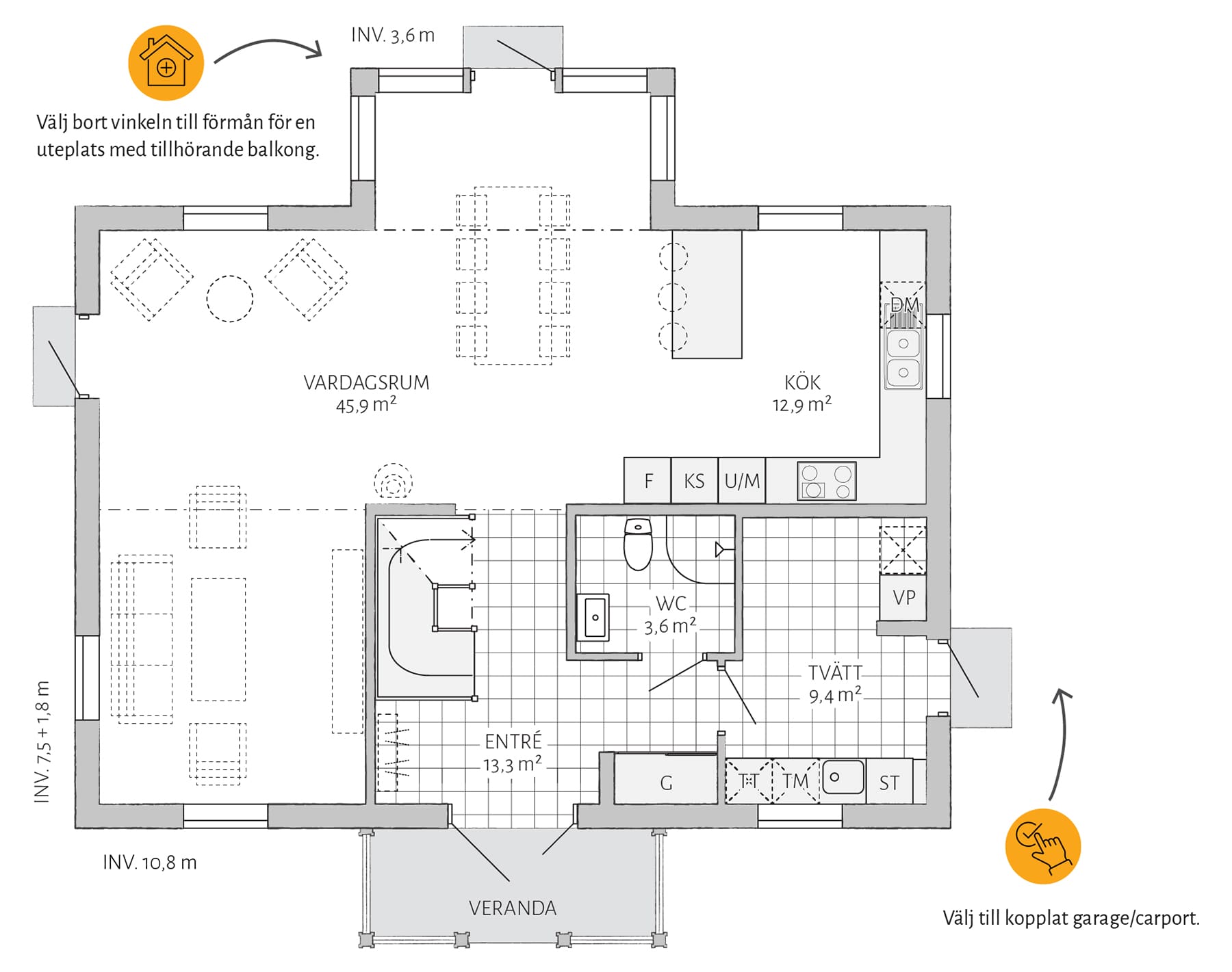 Stjärnhem er lett å tilpasse! Del av stuen for et ekstra soverom i første etasje og bygg et praktisk lager under trappen. Avslutt med en tilkoblet garasje med praktisk inngang fra vaskerommet, og du har all plassen du trenger.