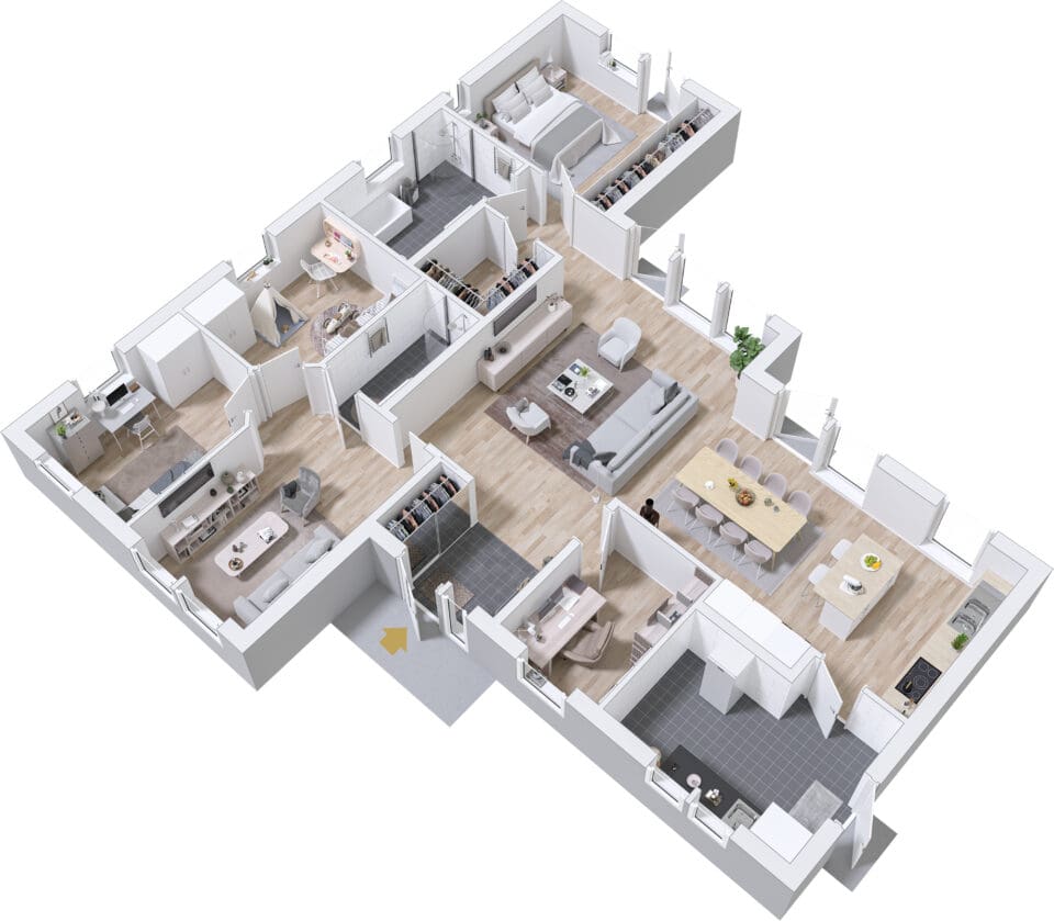 Her er Vikhem, et hyggelig en-etasjes hus for barnefamilier som søker en praktisk bolig med landlig preg. Nyt store middager på det romslige kjøkkenet med tilstøtende stue og nærhet til en generøs terrasse. I Vikhem får barna fritt spillerom i en avskilt del av huset, og den tradisjonelle stilen danner rammen for en perfekt kombinasjon av sosialt samvær og familieliv, fordelt på 152 kvadratmeter med smarte løsninger.