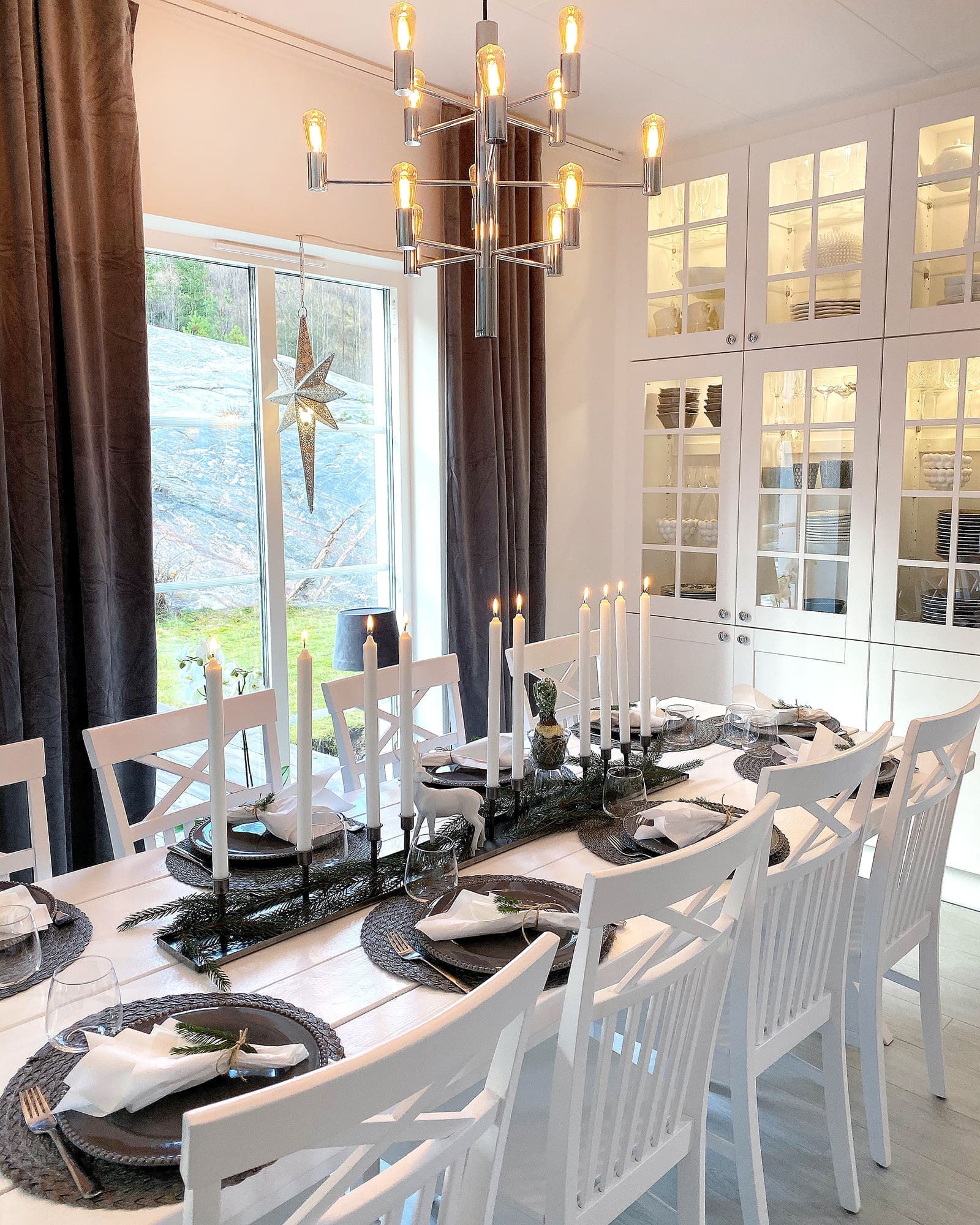 Tänk dig julstämning i vita och gröna kulörer. Tänk rent, nästan avskalat men samtidigt varmt och ombonat. Tänk också New England. Har du tänkt klart? Då kan du titta på bilderna intill den här texten, från det 196 kvadratmeter stora Ekebergahuset byggt på en höjd i Borås. Linda och maken Kent har under sommaren och hösten tillsammans skapat det som blivit deras decemberdröm.